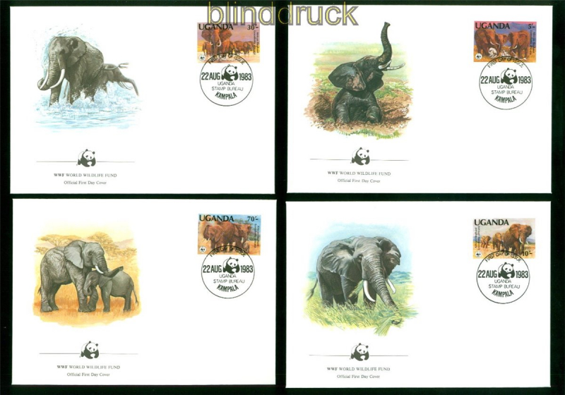 Uganda Mi # 361/64 C postfrisch / FDC / MK WWF Elefanten ( WWF-Ausgaben Afrikanischer Elefant (I) postfrisch, Ersttagsbriefe und Maximumkarten gestempelt nicht bewertet Erhaltung siehe Scan
