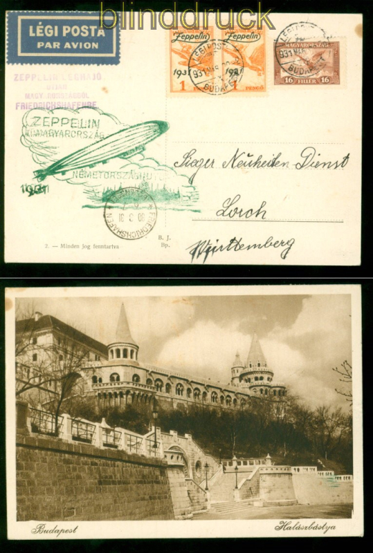 Ungarn LZ 127 Ungarnfahrt Rückfahrt # 163 A a mit 2 x Mi # 478 LZ 127 Graf Zeppelin Landungsfahrt nach Ungarn Rückfahrt Budapest - Friedrichshafen Bestätigungsstempel in dunkelgrün Ankunftsstempel Friedrichshafen frankiert mit waagerechtem Paar Zeppelinmarke 1 Pengö orange Mi # 478 Erhaltung siehe Scan