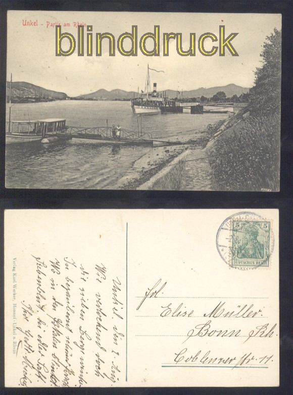 Rheinland-Pfalz Unkel sw-AK Partie am Rhein 1910 Karte gelaufen aus Unkel 2.8.1910 nach Bonn Erhaltung siehe Scan