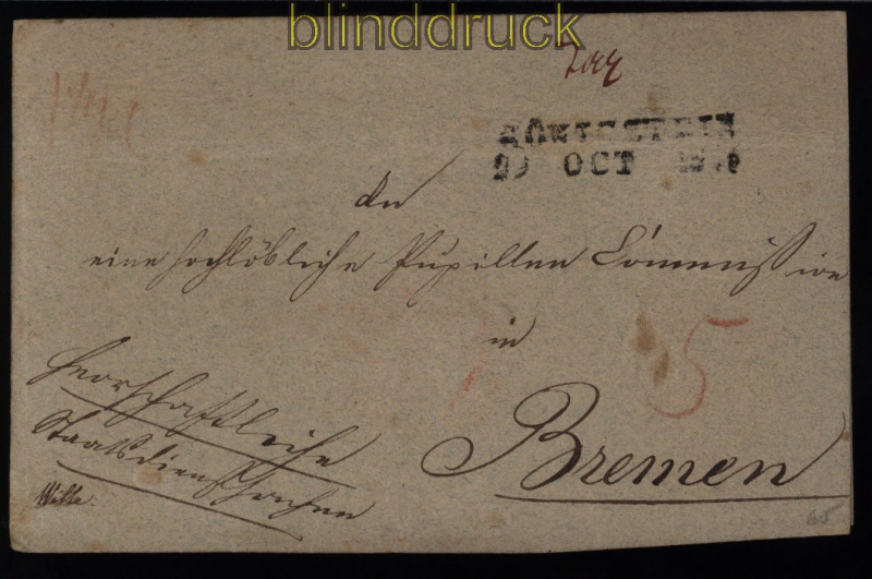 Vorphila-Briefhülle Königstein 1846 doppelt verwendet Usingen L2 in schwarz Königstein 29 Oct 1946 (Feuser # 1793-2) nach Bremen Briefhülle doppelt versendet L2 Usingen 27 Oct 1846 (Feuser # 3658-2) nach Königstein diverse Rötelvermerke Erhaltung siehe Scan