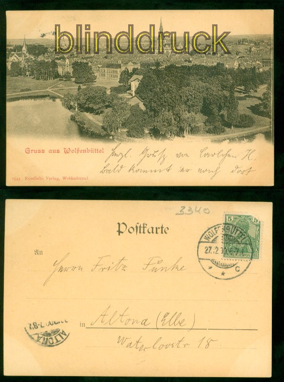 Niedersachsen Gruss aus Wolfenbüttel sw-AK Gesamtansicht 1900 nach Altona Karte gelaufen 27.12.1900 nach Altona Erhaltung siehe Scan