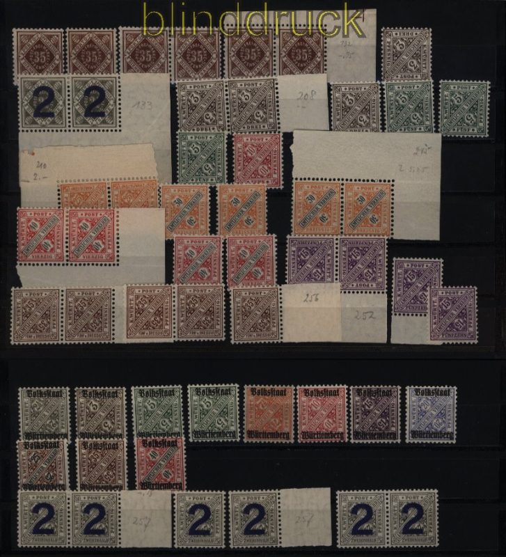Württemberg Dienst kleines postfrisches Lot teils mehrfach Paare Eckrand unterschiedliche Ausgaben der Dienstmarken I und II alle Marken sind postfrisch dabei ist die Marke 133 I teilweise mehrfach mit Rändern oder Eckrändern Erhaltung siehe Scan