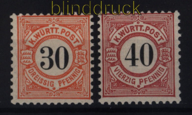 Altdeutschland Württemberg Mi # 61/62 postfrisch schwarze Ziffern im Kreis 30 und 40 Pfennig schwarze Ziffern im Kreis postfrisch einwandreie Erhaltung siehe Scan