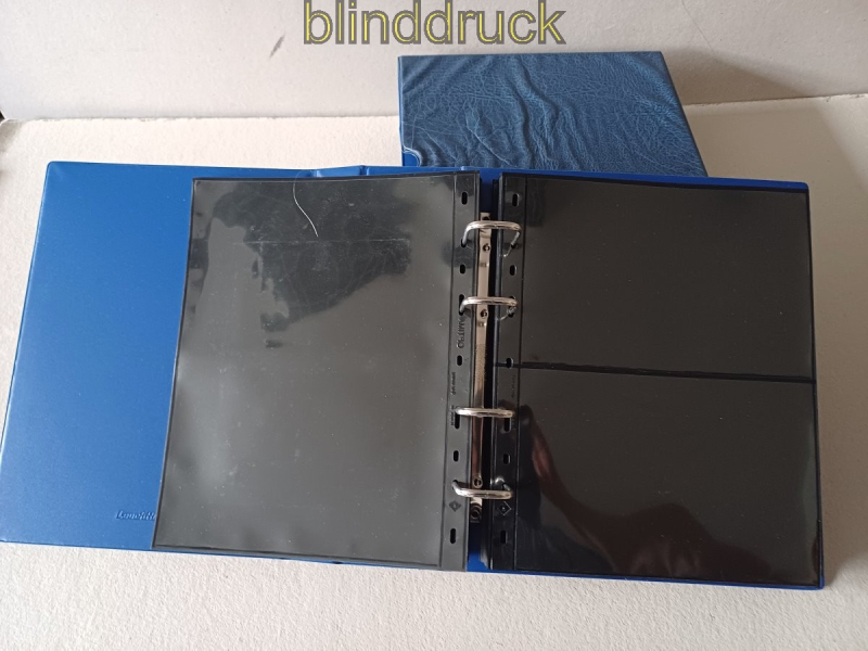Leuchtturm blauer Optima Gigant Ringbinder mit Kassette und 50 Hüllen gebraucht blauer Optima-Gigant Ringbinder (319597) mit Kassette inklusive 20 schwarzen Hüllen 1S mit einem Streifen (326 667) und 40 Hüllen 2S mit zwei Streifen (309942) gebraucht Erhaltung siehe Scan