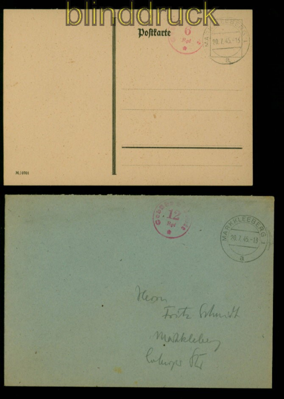 Alliierte Besetzung Markkleeberg Gebühr bezahlt 2 Belege 20.7.1945 Barfreimachung Markkleeberg auf Ortsbrief und Blanko-Postkarte Gebühr bezahlt Erhaltung siehe Scan