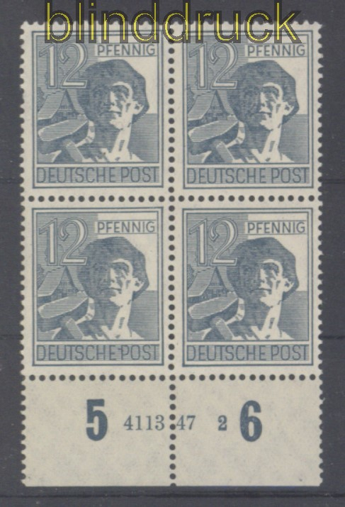 Alliierte Besetzung Gemeinschaftsausgaben Mi # 947 postfrischer 4er-Block mit HAN 4113.47 2 12 Pfg. 2. Kontrollratsausgabe mit Hausauftragsnummer postfrisch Erhaltung siehe Scan