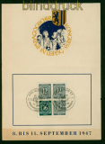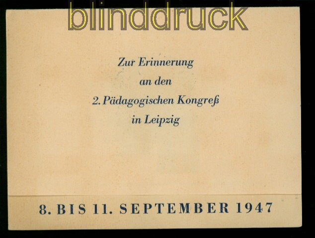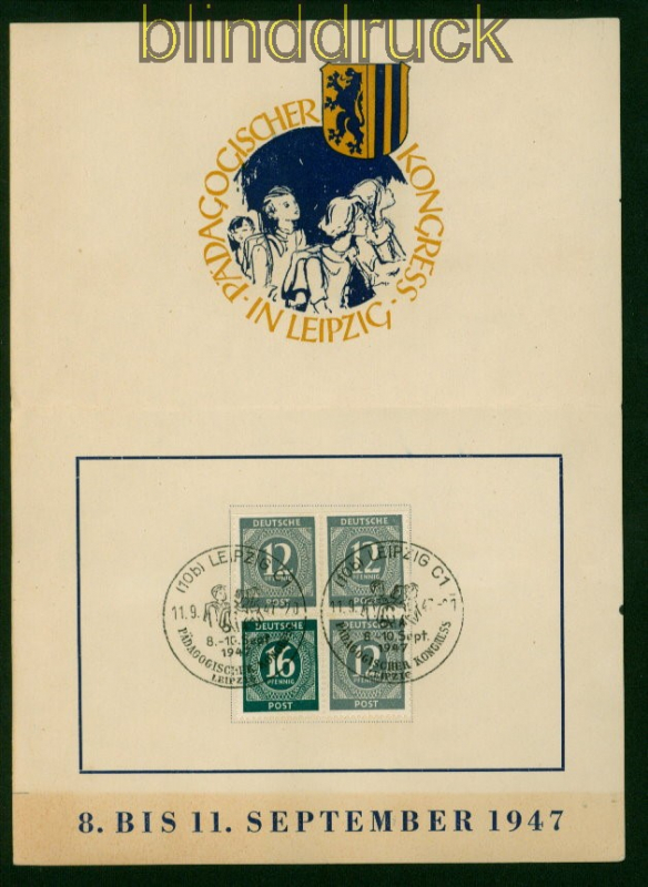 alliierte Besetzung Gemeinschaftsausgaben Mi # W 158 gestempelt Gedenkblatt SSt. Leipzig waagerechter Zusammendruck aus MH 50 16 + 12 Pfg. im Gedenkblatt Zur Erinnerung an den 2. Pädagogischen Kongreß in Leipzig 8. bis 11. September 1947 entwertet Sonderstempel Pädagogischer Kongress in Leipzig Erhaltung siehe Scan