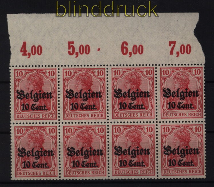 Deutsche Besetzung 1. Weltkrieg Landespost in Belgien Mi # 14 postfrisch 8er-Block vom Oberrand Platte 10 C auf 10 Pfg. Germania 8er-Block vom Oberrand im Plattendruck postfrisch Erhaltung siehe Scan