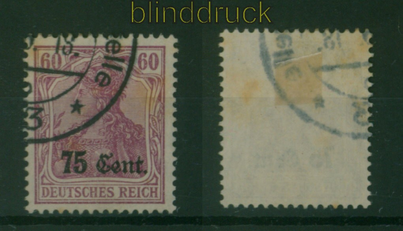 Deutsche Besetzung 1. Weltkrieg Landespost in Belgien Mi # 21 a gestempelt k 75 Cent auf 60 Pfg. Germania gestempelt Erhaltung siehe Scan