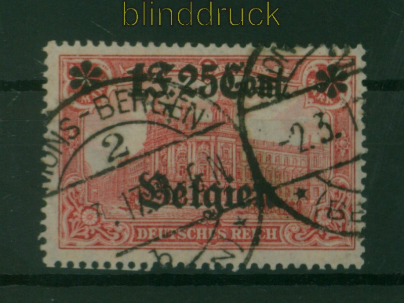 Deutsche Besetzung 1. Weltkrieg Landespost in Belgien Mi # 23 II gestempelt Aufdruckmarke 1 Fr 25 C. auf 1 Mark Germania Zähnung 25:17 gestempelt Erhaltung siehe Scan