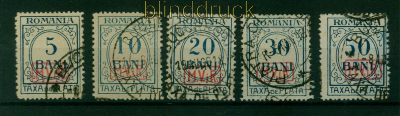Deutsche Besetzung 1. Weltkrieg Militärverwaltung in Rumänien Portomarken Mi # 1/5 gestempelt ohne Wasserzeichen komplette Ausgabe gestempeltErhaltung siehe Scan