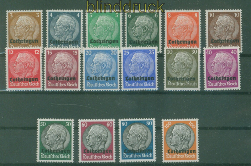 Deutsche Besetzung 2.Weltkrieg Lothingen Mi # 1/16 postfrisch Aufdrucksatz Hindenburg-Aufdrucksatz komplette Ausgabe postfrisch Erhaltung siehe Scan