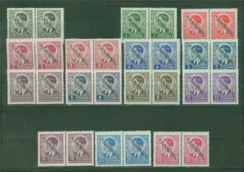 Deutsche Besetzung 2.Weltkrieg Serbien Mi # 1/15 (2) postfrisch ohne Mi # 2 Aufdruckmarken Aufdrucksatz König Peter II als waagerechte Paare komplette Ausgabe ohne Mi # 2 postfrisch Erhaltung siehe Scan