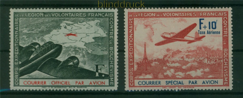 Deutsche Besetzung 2. Weltkrieg private Ausgaben Frankreich Mi # II/III postfrisch komplette Ausgabe Flugpostvignetten postfrisch Erhaltung siehe Scan