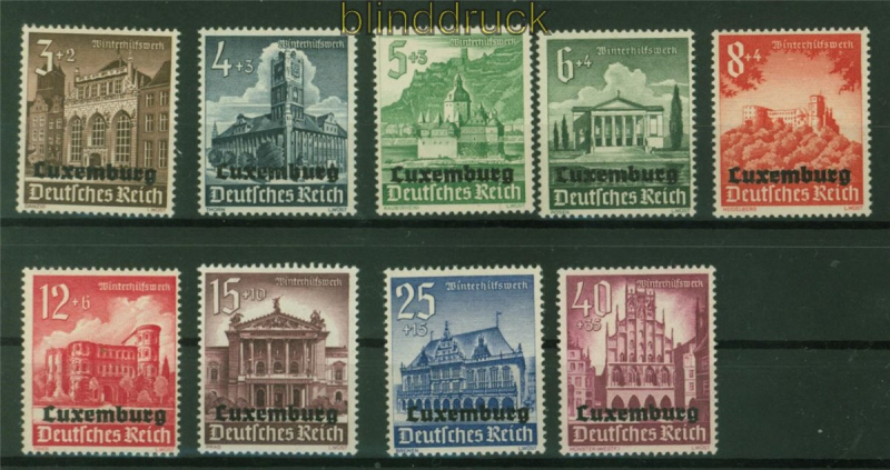 Deutsches Reich Besetzung 2. WK Luxemburg Mi # 33/41 postfrisch Aufdrucksatz komplette Ausgabe postfrisch Erhaltung siehe Scan