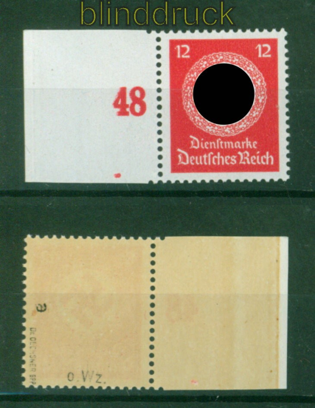 Deutsches Reich Dienst Mi # 172 a postfrisch 12 Pfg. ohne Wasserzeichen geprüft Schlegel BPP 12 Pfg. Dienstmarke schwärzlichrosa vom linken Seitenrand ohne Wasserzeichen postfrisch geprüft Schlegel BPP Erhaltung siehe Scan