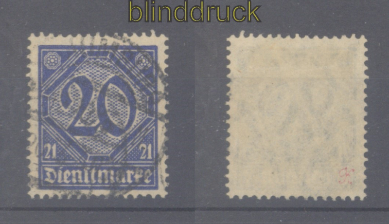 Deutsches Reich Dienstmarken Mi # 19 b gestempelt Fotoattest Winkler BPP 20 Pfg. mit Ablösungsziffer 21 preußischblau gestempelt Fotoattest Winkler BPP: ".... echt, sehr gut gezähnt und einwandfrei Erhaltung siehe Scan