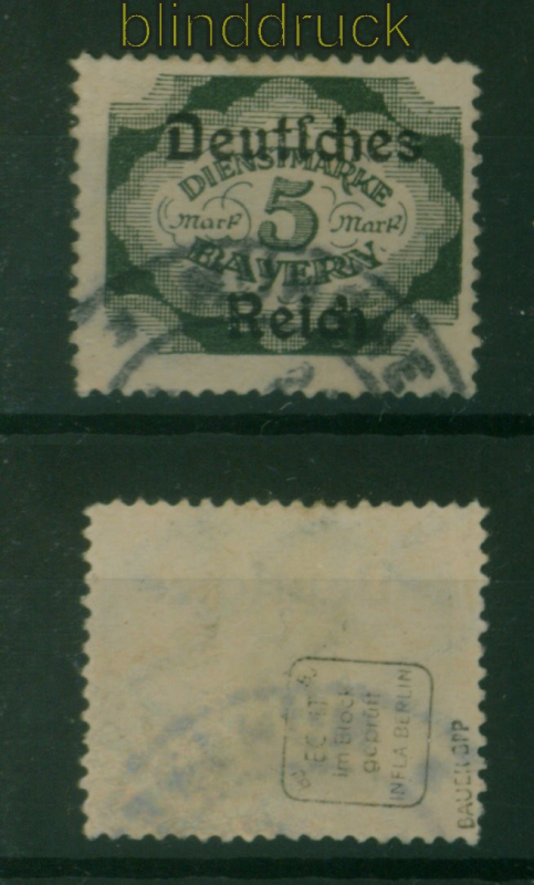 Deutsches Reich Dienst Mi # 51 gestempelt geprüft Infla Berlin Dienstmarke Aufdruckmarke 5 Mark Bayernabschied gestempelt geprüft Infla Berlin Erhaltung siehe Scan