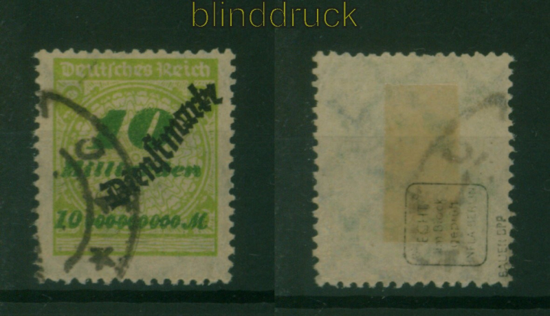Deutsches Reich Dienst Mi # D 86 gestempelt geprüft Bauer BPP 10 Mrd. Dienstmarke Schlangenaufdruck gestempelt geprüft Bauer BPP Erhaltung siehe Scan
