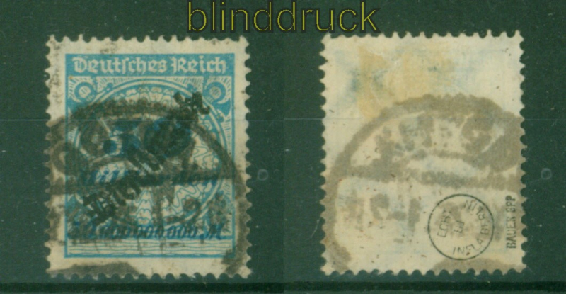 Deutsches Reich Dienst Mi # 88 gestempelt geprüft Bauer BPP ( 50 Mrd. Dienstmarke Schlangenaufdruck gestempelt geprüft Bauer BPP Eckbug unten rechts Erhaltung siehe Scan