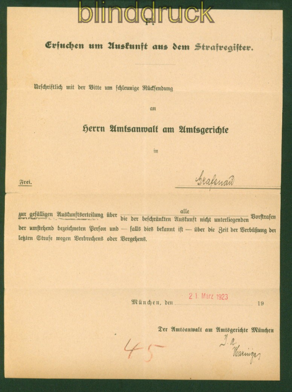 Deutsches Reich Gebühr bezahlt Grafenau 1923 auf Vordruck-Amtsbrief nach München Vordruck-Amtsbrief mit dem seltenen Gebühr bezahlt Stempel L2: Gebühr mit / M bezahlt handschriftlich notiert in rot: 100 M gelaufen aus Grafenau 21.3.1923 nach München Erhaltung siehe Scan