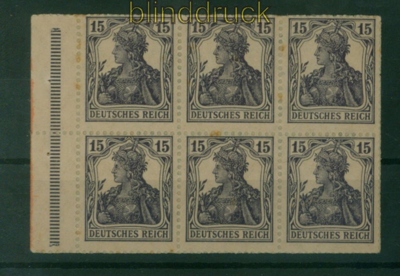 Deutsches Reich Heftchenblatt Mi # 15 A postfrisch 15 Pfennig Germania 15 Pfennig Germania Heftchenblatt komplettes Heftchenblatt mit Heftchenblattrand postfrisch das Werbe-Zwischenblatt Amol Natron-Tabletten heftet am Heftchenblattrand die Marken sind postfrisch kleine Braunflecken Erhaltung siehe Scan
