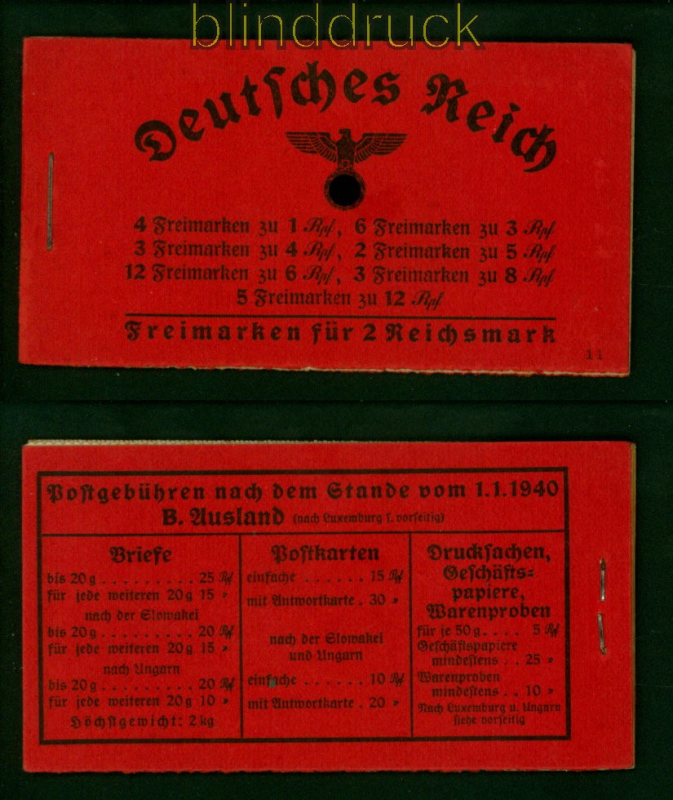 dt. Reich Markenheftchen Mi # 39.1 postfrisch Hindenburg 1940/41 Hindenburg Katalogwert 240,00 Euro Erhaltung siehe Scan