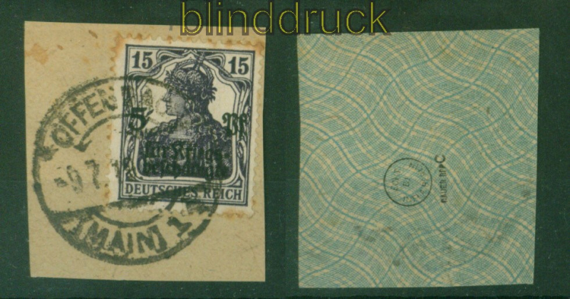 Deutsches Reich Mi # 101 c gestempelt auf Briefstück geprüft Bauer BPP 15 Pfg. Germania dunkelblauviolett gestempelt auf Briefstück Marke in den Zahnspitzen mit Braunflecken geprüft Bauer BPP Erhaltung siehe Scan