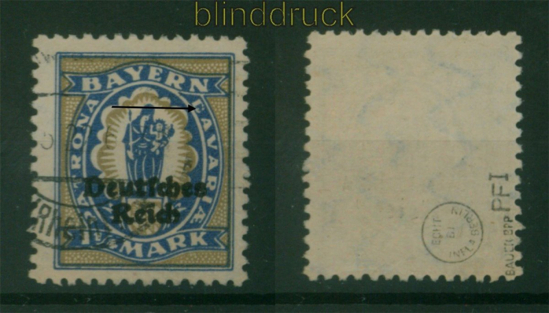 Deutsches Reich Mi # 130 PF I gestempelt geprüft Bauer BPP ( 1 1/4 Mark Bayernabschied gestempelt mit Plattenfehler I: Davaria geprüft Bauer BPP Erhaltung siehe Scan