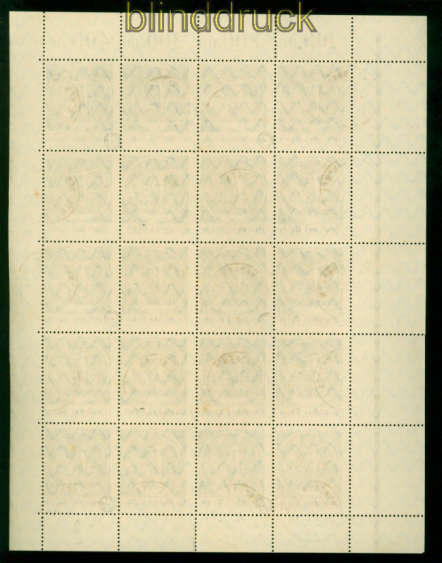 Deutsches Reich Mi # 138 I gestempelter kompletter Bogen geprüft Infla Berlin 20 Mark Bayernabschied Type I kompletter Bogen zu 20 Marken 4 x Oberrand Platte Type VI gestempelt geprüft Infla Berlin Erhaltung siehe Scan