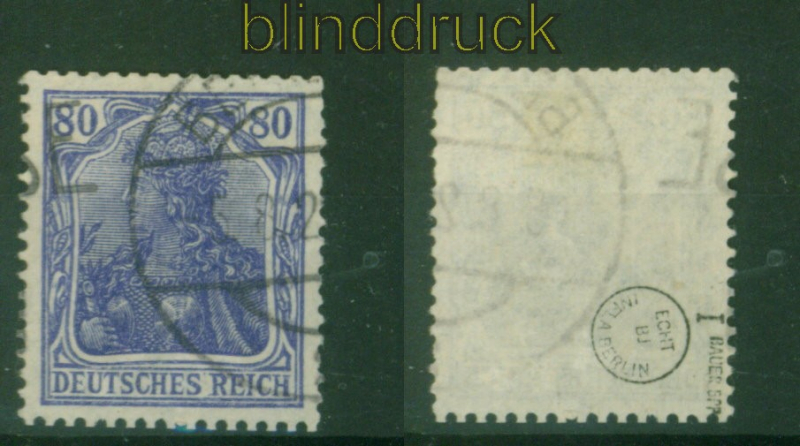 Deutsches Reich Mi # 149 I gestempelt geprüft Bauer BPP 80 Pfg. Germania Type I gestempelt geprüft Bauer BPP gute Erhaltung siehe Scan