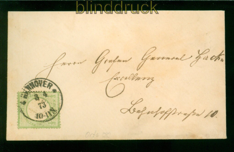 Deutsches Reich Mi # 17 a EF Ortsbrief Hannover 3.4.1873 1/3 Groschen gelblich grün als Einzelfrankatur auf Ortsbrief Hannover 3.4.1873 Erhaltung siehe Scan