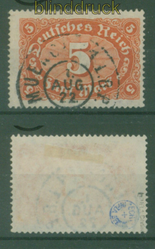 Deutsches Reich Mi # 174 b gestempelt geprüft Infla Berlin 5 Mark Ziffer Wasserzeichen Rauten braunorange gestempelt geprüft Infla Berlin Erhaltung siehe Scan