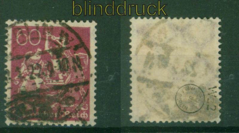 Deutsches Reich Mi # 184 gestempelt geprüft Infla Berlin 60 Pfg. Schmied Wasserzeichen Waffeln gestempelt geprüft Infla Berlin Erhaltung siehe Scan