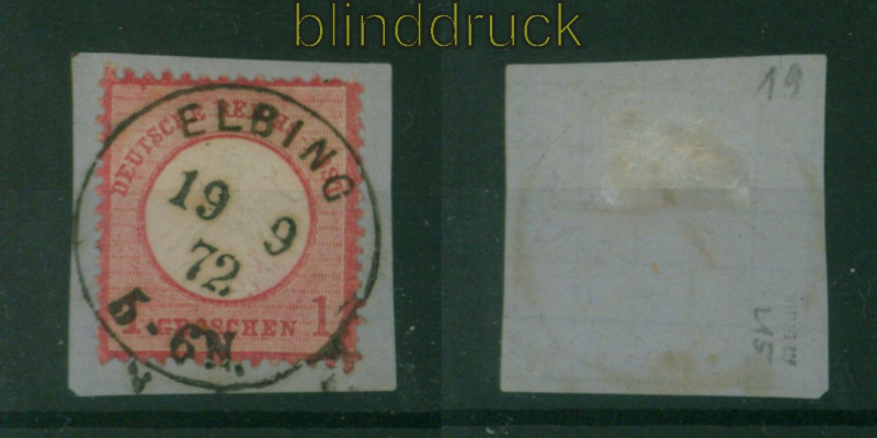 Deutsches Reich Mi # 19 L 15 gestempelt auf Briefstück gepr. Krug BPP 1 Groschen großer Schild kleine Marke L 15 sauber gestempelt Elbing 19.9.1872 auf Briefstück Erhaltung siehe Scan