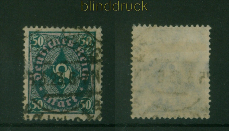 Deutsches Reich Mi # 209 Y gestempelt Vierpass-Wasserzeichen Fotobefund Bauer BPP 50 Mark Posthörnchen mit Unterdruck mit dem seltenen Vierpass-Wasserzeichen gestempelt Fotobefund Bauer BPP: ".... Marke ist echt, Eckbug, links Zähnungsdefizite, Papieraufspaltung" Erhaltung siehe Scan