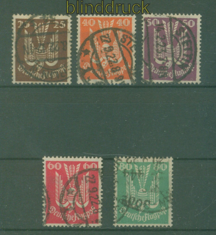 Deutsches Reich Mi # 210/14 gestempelt Pfennig-Werte Holztaube (I) geprüft Infla Berlin Holztaube (I) 25 bis 80 Pfennig der Ausgabe Holztaube (I) gestempelt geprüft Infla Berlin Erhaltung siehe Scan