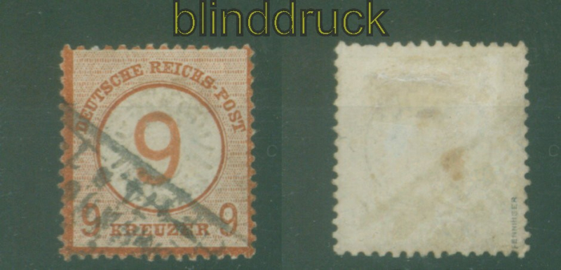 Deutsches Reich Mi # 30 gestempelt 9 auf 9 Kreuzer großer Schild signiert Pfenninger 9 auf 9 Kreuzer großer Schild kleine helle Stelle signiert Pfenninger Erhaltung siehe Scan