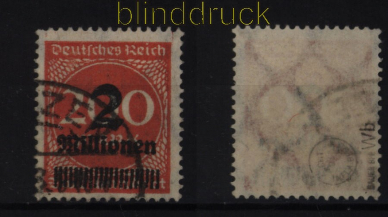Deutsches Reich Mi # 309 A W b Aufdruckmarke gestempelt geprüft Bauer BPP Aufdruckmarke 2 Mio auf 200 Mark bräunlichrot gezähnt gestempelt geprüft Bauer BPP Erhaltung siehe Scan