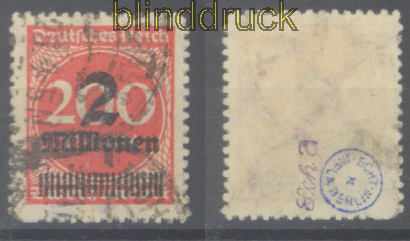 Deutsches Reich Mi # 312 B (32) gestempelt Briefstück Aufdruckmarke Aufdruckmarke 2 Mio auf 5000 Mark durchstochen im 32er Block auf Briefstück gestempelt Taucha 2.11.1923 der 32er-Block ist mittig in der Zähnung gefaltet so große Einheiten werden gestempelt nicht häufig angeboten Erhaltung siehe Scan