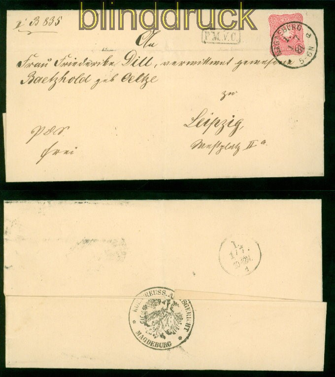 Deutsches Reich Mi # 41 EF portopflichtige Dienstsache P.M.V.C. Magdeburg 1881 nach Leipzig 10 Pfennig Adler im Oval Einzelfrankatur EF auf portopflichtiger Dienstsache mit R1: P.M.V.C. Porto mit Vergütungs-Cempensation Königl. Preuss. Amtsgericht Magdeburg gelaufen aus Magdeburg 1.8.1881 nach Leipzig Ankunftsstempel Erhaltung siehe Scan