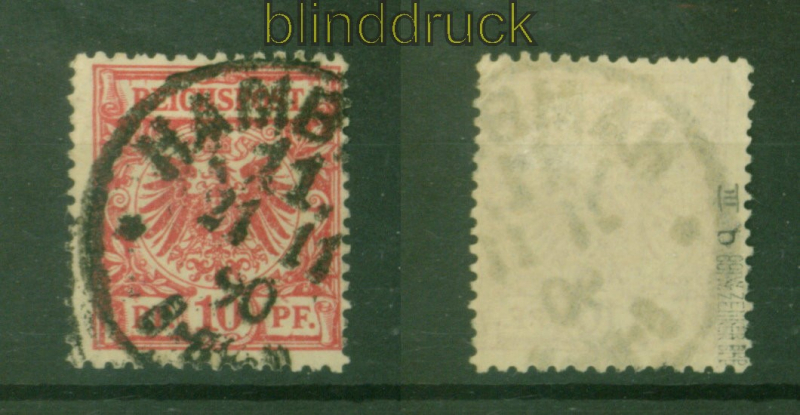 Deutsches Reich Mi # 47 b III gestempelt geprüft Zenker BPP 10 Pfennig Krone/Adler lebhaftrosarot Marke mit Plattenfehler III: P mit kurzem Fuß gestempelt geprüft Zenker BPP Erhaltung siehe Scan