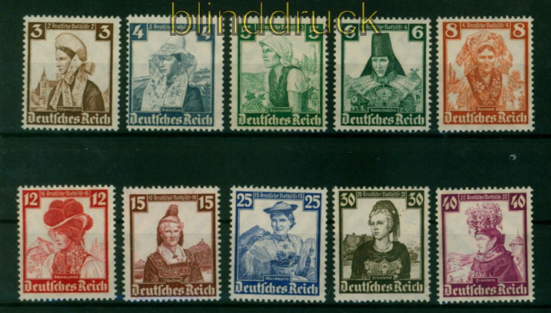 Deutsches Reich Mi # 588/97 Nothilfe 1935 postfrisch Nothilfe 1935: Volkstrachten komplette Ausgabe postfrisch Erhaltung siehe Scan