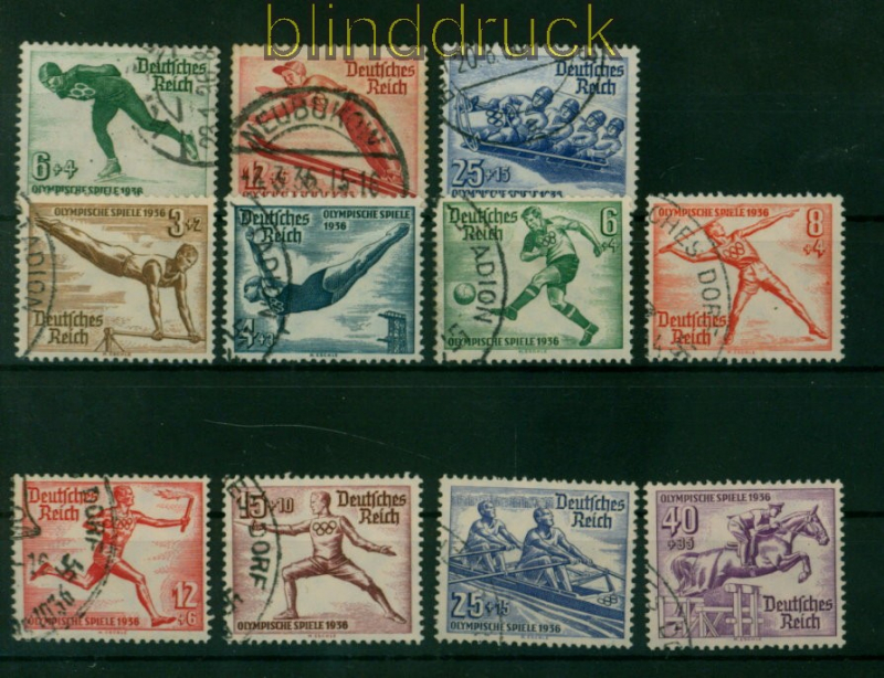 Deutsches Reich Mi # 600/02 und 609/16 gestempelt beide Olympiasätze Olympische Winter- und Sommerspiele in komplette Ausgaben gestempelt Rundstempel Erhaltung siehe Scan