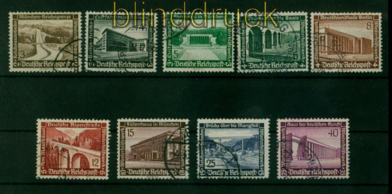 Deutsches Reich Mi # 634/42 gestempelt WHW 1936 Winterhilfswerk 1936: Moderne Bauten komplette Ausgabe gestempelt Erhaltung siehe Scan