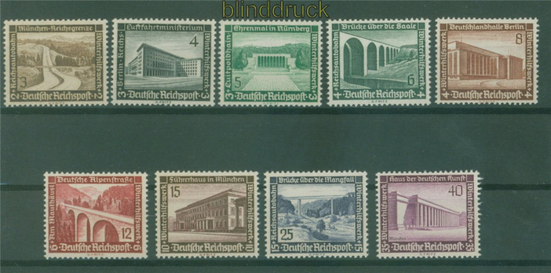 Deutsches Reich Mi # 634/42 WHW 1936 postfrisch Winterhilfswerk 1936: Moderne Bauten komplette Ausgabe postfrisch Erhaltung siehe Scan