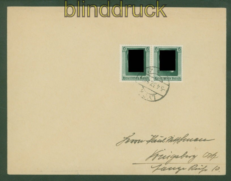 Deutsches Reich Mi # 646 MeF FDC Lyck 5.4.1937 Einzelmarken aus Block 7 SELTEN !!!!!! 6 Pfennig aus Blockausgabe zum 48. Geburtstag zwei Einzelmarken aus Block 7 als portogerechte Mehrfachfrankatur MeF vom Ersttag Erstagsbrief FDC gelaufen aus Lyck 5.4.1937 nach Königsberg Erhaltung siehe Scan