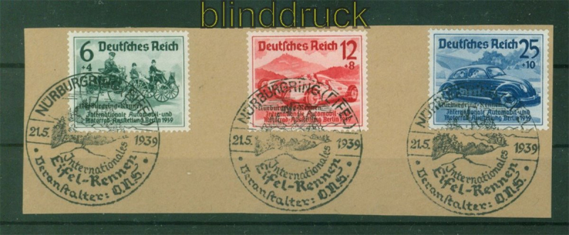 Deutsches Reich Mi # 695/97 Nürburgring-Rennen mit SSt auf Briefstück Nürburgring-Rennen komplette Ausgabe mit Sonderstempel auf Briefstück gestempelt Erhaltung siehe Scan