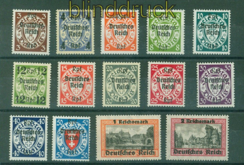 Deutsches Reich Mi # 716/29 postfrisch Danzig-Abschiedsserie komplette Ausgabe postfrisch Originalgummi die Markwerte sind geprüft Schlegel BPP Erhaltung siehe Scan