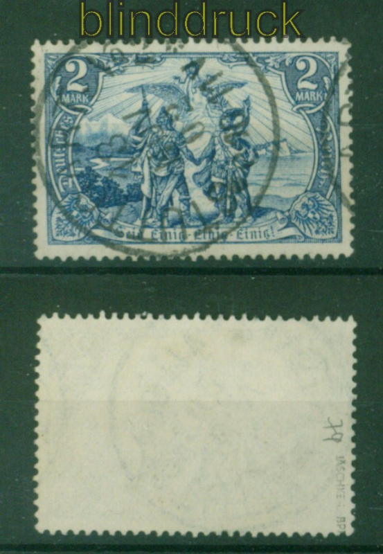 Deutsches Reich Mi # 79 gestempelt geprüft Jäschke-Lantelme BPP 2 Mark Germania schwarzblau ohne Wasserzeichen Zähnung 26 : 17 gestempelt geprüft Jäschke-Lantelme BPP Erhaltung siehe Scan